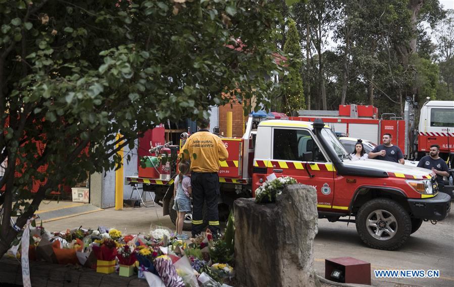 Citizens mourn for the two volunteer firefighters who died in combat against the bushfire at the Horsley Park Rural Fire Service (RFS) in New South Wales, Australia, Dec. 21, 2019. The New South Wales (NSW) government in Australia once again declared a state of emergency because of the devastating bushfire on Thursday. (Xinhua/Bai Xuefei)