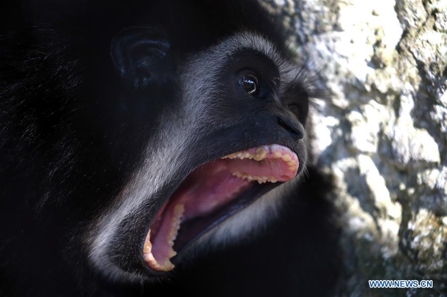 A lar gibbon yawns at the Zoological Gardens in Yangon, Myanmar, Dec. 22, 2019. (Xinhua/U Aung)
