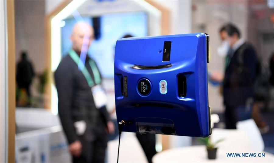 A visitor views a window-cleaning robot during the 2020 Consumer Electronics Show (CES) in Las Vegas, the United States, Jan. 9, 2020. The world's premier tech show was wrapped up here on Friday. The four-day show drew more than 4,500 exhibitors from over 160 countries. (Xinhua/Wu Xiaoling)