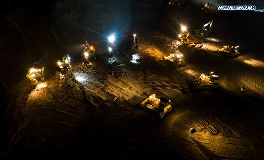 Aerial photo taken on Jan. 24, 2020 shows the construction site of a makeshift hospital in Wuhan, central China's Hubei Province. The makeshift hospital is expected to pool medical resources to provide isolated and efficient treatment for infected pneumonia patients. (Xinhua/Xiao Yijiu)