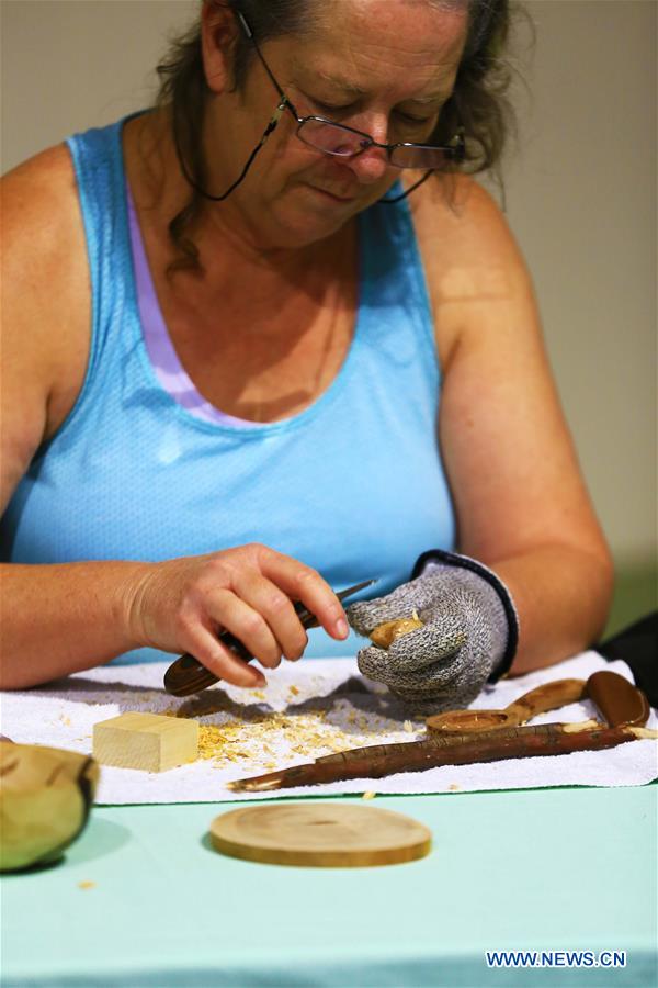 An artisan makes craftworks during the Royal Canberra Show in the Exhibition Park in Canberra, Australia, Feb. 23, 2019. The annual Royal Canberra Show is held from Feb. 22-24 this year. (Xinhua/Pan Xiangyue)
