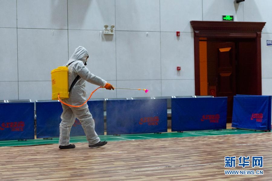1月23日,工作人員在哈爾濱市兆麟社區核酸檢測點進行消殺。新華社記者 謝劍飛 攝