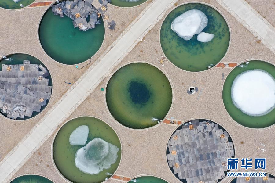 這是2月7日在伊河鱘業科技股份有限公司養殖基地拍攝的魚池(無人機照片)。