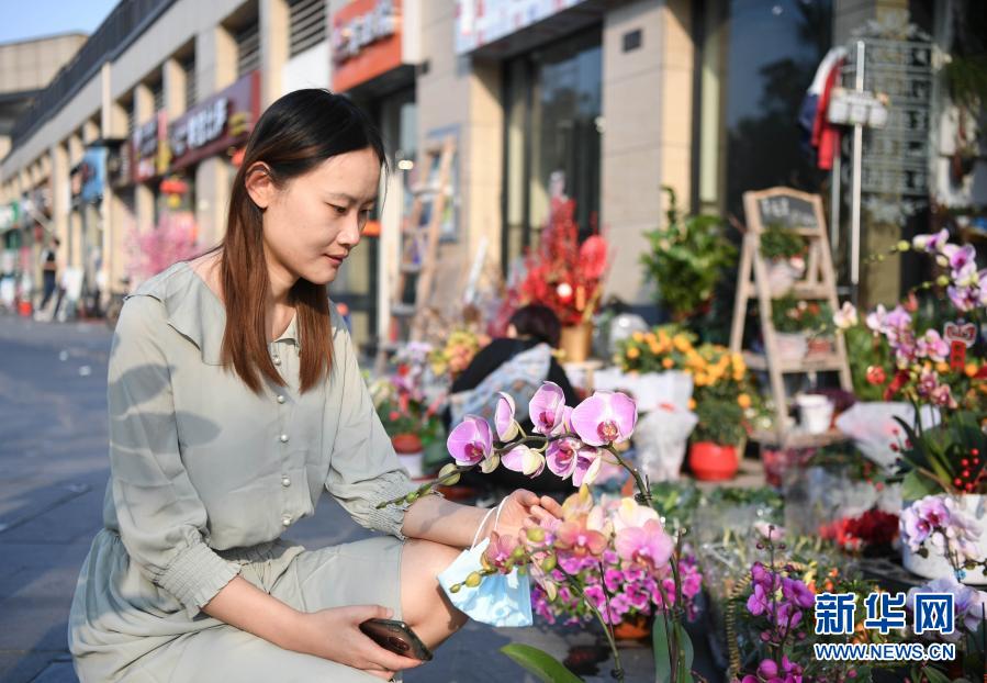 陳志昊在廣州荔灣區一處花店選購過年用的鮮花(2月6日攝)。