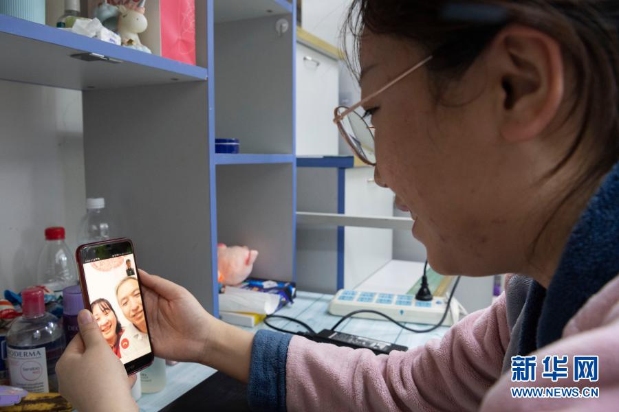 在哈爾濱工業大學的宿舍里,王舒婷和父母視頻通話(2月1日攝)。新華社記者 謝劍飛 攝
