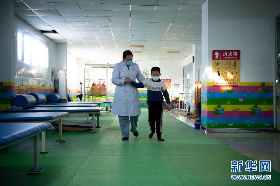 在哈爾濱博能中醫門診部,劉雨晴為腦癱兒童進行康復訓練(2月2日攝)。新華社記者 謝劍飛 攝