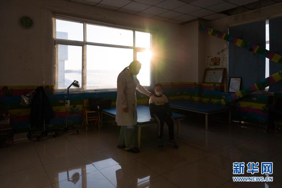 在哈爾濱博能中醫門診部,劉雨晴和腦癱兒童交談(2月2日攝)。新華社記者 謝劍飛 攝