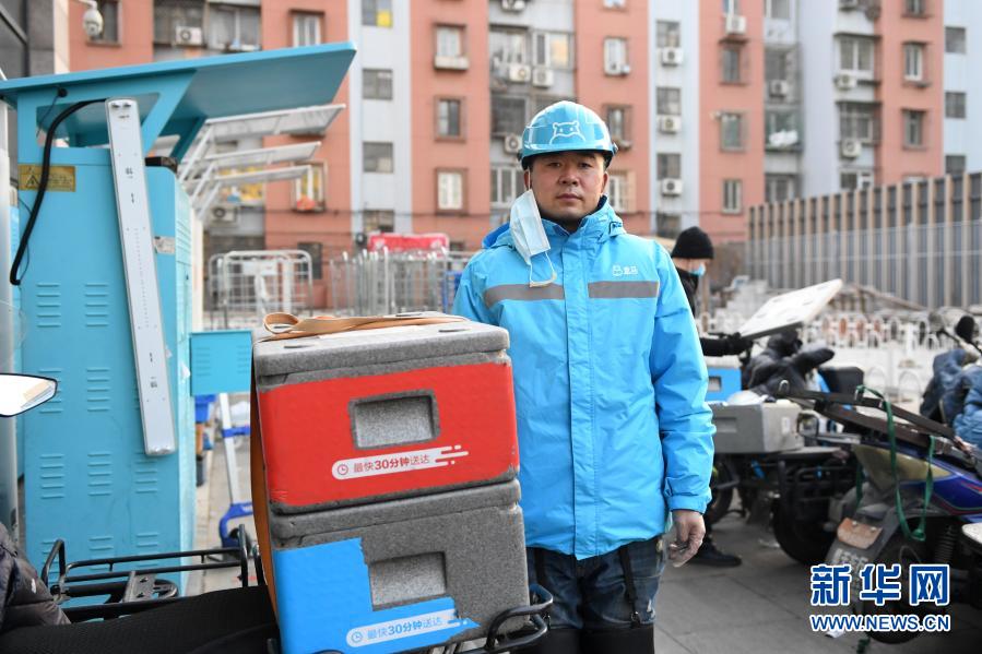 盒馬鮮生棗園店配送員劉樹才在出發配送前(2月5日攝)。劉樹才,41歲,來自黑龍江省五常市,來到北京已經有10年。2020年3月,劉樹才加入盒馬鮮生成為一名配送員,負責門店附近3公里以內的貨物配送,日均配送約60單。今年過年,他選擇和妻子孩子一起留在北京過年,“老家七十多歲的父母都很支持我的工作,今年過年不能回家,我尋思跟爸媽說一句,讓他倆在家別舍不得花錢,多買點好吃的?!眲洳耪f。