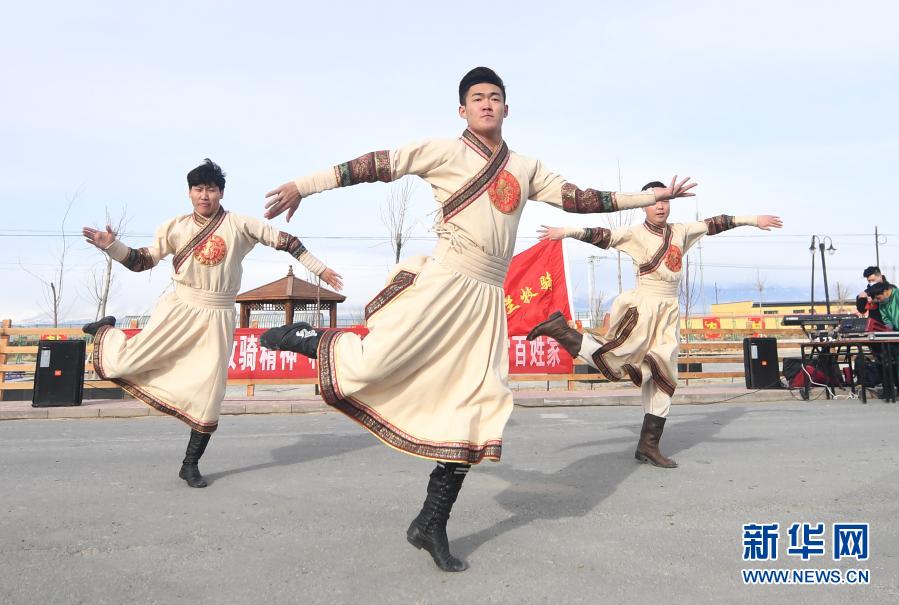 2月11日,烏蘭牧騎演員在表演集體舞。