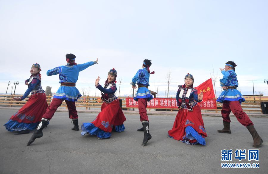 2月11日,烏蘭牧騎演員在表演集體舞。