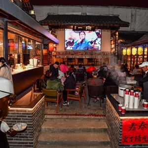 除夕夜,成都寬窄巷子景區內的壹丁24小時書吧咖啡館響應“就地過年”倡議,推出“來寬窄吃團圓飯看春晚”活動。上百名市民、游客圍坐在古樸的寬窄巷子院壩里,享受露天看春節聯歡晚會的樂趣。壹丁24小時書吧咖啡館的創始人還準備了餃子、湯圓請游客免費品嘗,成為一道別樣的年夜飯。