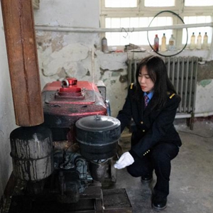 孫家寨站車站值班員李二鑫在使用發電機(2月10日攝)。新華社記者 嚴賦憬 攝