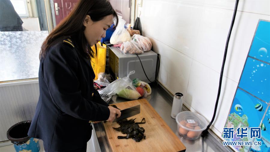 孫家寨站車站值班員李二鑫為大家準備午餐(2月10日攝)。新華社記者 嚴賦憬 攝