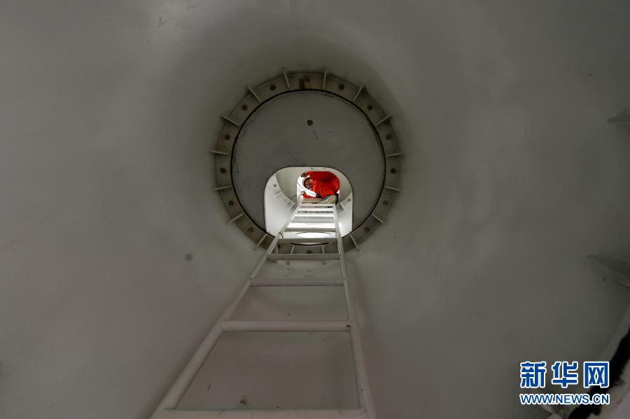 2月14日,在海南省三沙市趙述島,傅建斌走下燈樁。新華社記者 周佳誼 攝