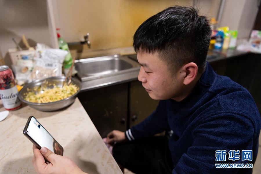 2月15日,在哈爾濱市香坊區租住的房子里,劉剛在和家人視頻通話。新華社記者 謝劍飛 攝