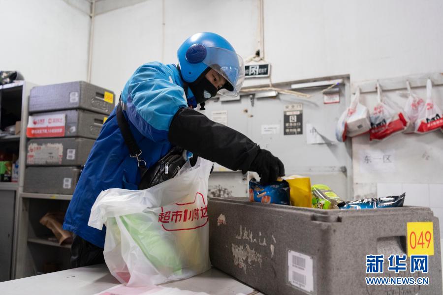 2月15日,在哈爾濱市香坊區一大型超市的配送站點,劉剛在分裝商品。新華社記者 謝劍飛 攝