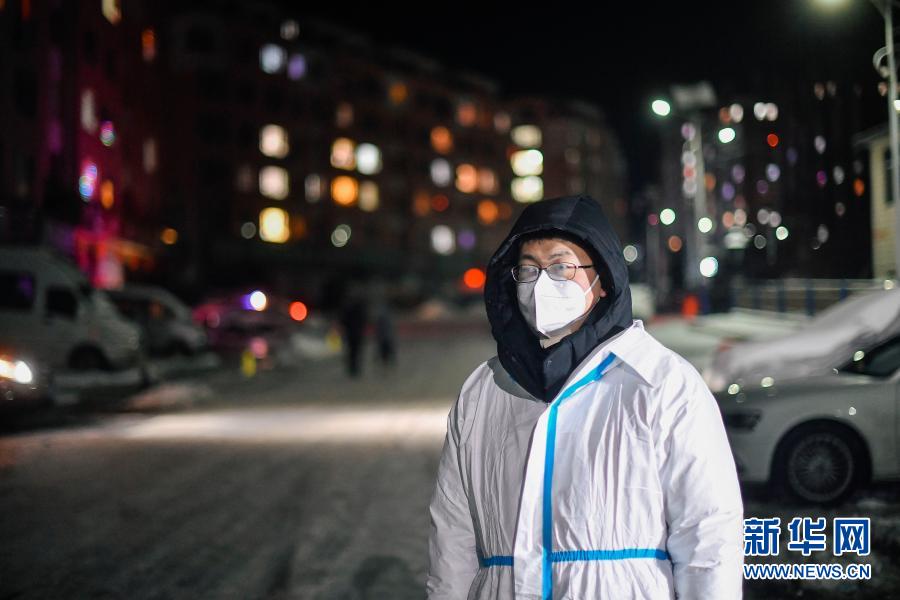 張原箔是吉林省通化市財政局職工。自1月15日起,他和同事們便奮戰在疫情防控一線,在東昌區濱江街道江南社區千葉湖小區參與卡點值守、入戶檢測、配送物資等防疫工作。春節期間,張原箔一天未休?!澳壳扒~湖小區已調整為低風險區域,面對這樣一場疫情,需要我們每個人、每個單位合力攻克,此次能夠為防疫工作盡我們的一份力,我感到十分的自豪和驕傲?!睆堅f。這是2月15日,張原箔在千葉湖小區卡點值守。