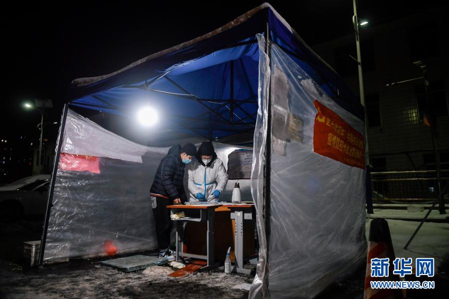 張原箔是吉林省通化市財政局職工。自1月15日起,他和同事們便奮戰在疫情防控一線,在東昌區濱江街道江南社區千葉湖小區參與卡點值守、入戶檢測、配送物資等防疫工作。春節期間,張原箔一天未休?!澳壳扒~湖小區已調整為低風險區域,面對這樣一場疫情,需要我們每個人、每個單位合力攻克,此次能夠為防疫工作盡我們的一份力,我感到十分的自豪和驕傲?!睆堅f。這是2月15日,張原箔在千葉湖小區卡點值守時為進入小區的居民登記信息。