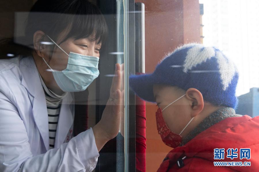 36歲的鄭瑩瑩是哈爾濱市道外區人民醫院的一名工作人員。2月1日至15日,她在道外區一處集中隔離點24小時值守,主要負責填寫報表、出入人員轉運聯絡等工作。這是2月11日除夕上午,鄭瑩瑩6歲的兒子來到隔離點看望媽媽,還給她帶來了一朵康乃馨。因疫情防控需要,鄭瑩瑩只能隔著賓館的玻璃門“摸摸”兒子。