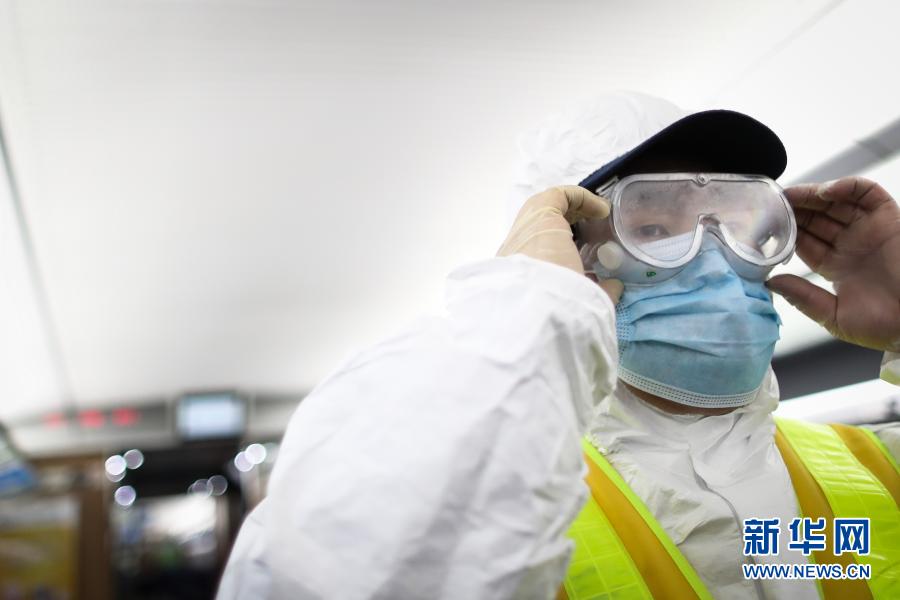 王桐是中國鐵路沈陽局集團有限公司沈陽動車段沈陽南動車所的一名地勤機械師。春節期間,王桐在崗值班三個班次,負責晚7點至次日凌晨2點之間10到15組動車組列車車廂的消殺工作,為旅客創造安全的乘車環境。這是王桐在整理護目鏡(2月14日攝)。