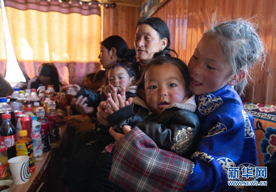 在紅原縣阿木鄉卡口村,親友歡聚在向巴家(2月15日攝)。新華社記者 江宏景 攝