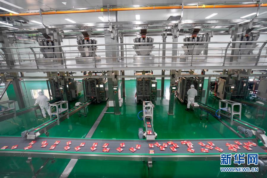 2月20日,在重慶涪陵榨菜集團股份有限公司生產車間內,智能化生產設備在生產涪陵榨菜產品。新華社記者 劉潺 攝