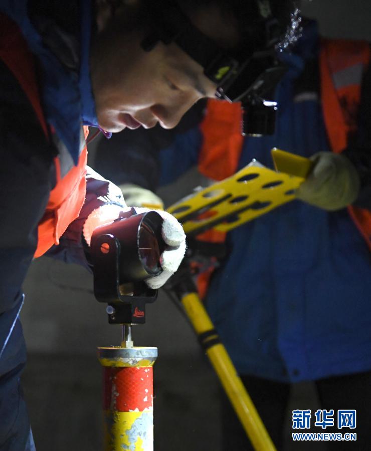 2月21日,鐵路工人在安裝檢查設備。新華社記者 張曼怡 攝