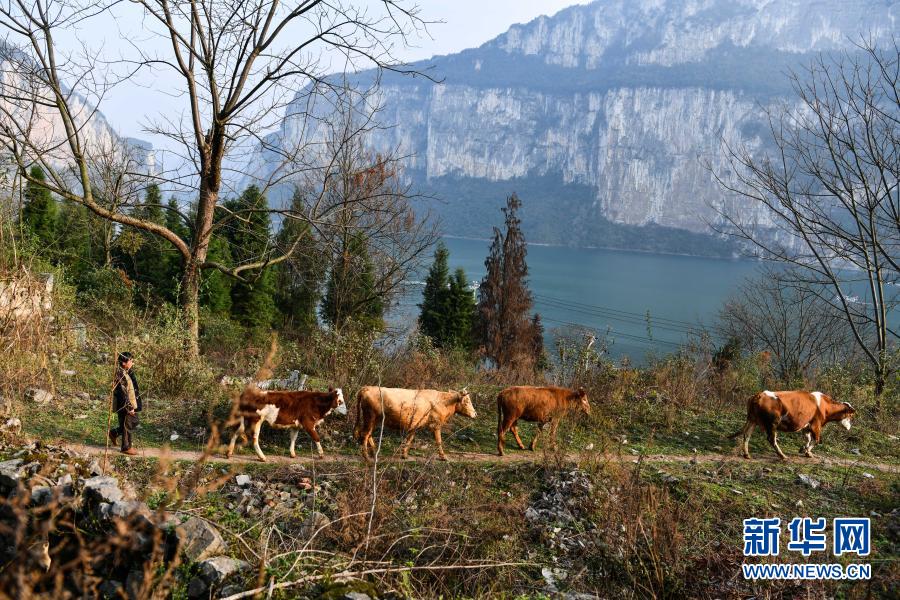 2月20日,化屋村苗族村民楊開基放牛歸來。楊開基家目前養有4頭黃牛,今年他想繼續擴大養殖規模,讓養牛事業更加紅火。