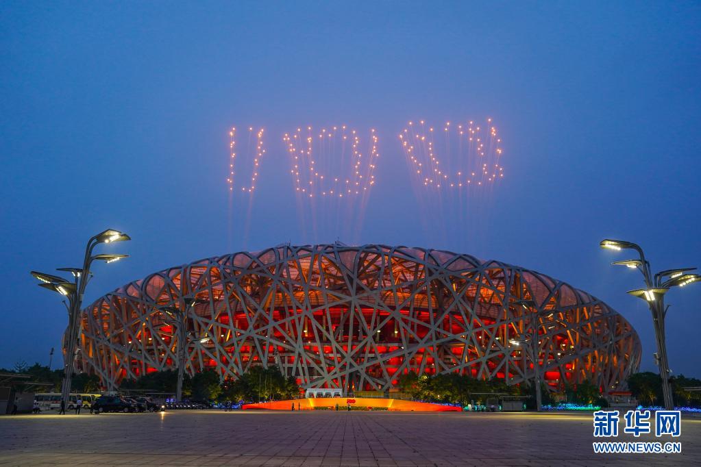 6月28日晚,慶祝中國共產黨成立100周年文藝演出《偉大征程》在國家體育場盛大舉行。這是焰火盛放在國家體育場上空。新華社記者 彭子洋 攝