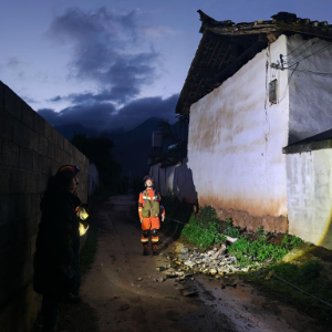 6月5日,大理州森林消防支隊洱源中隊在震中勘察房屋受損情況。