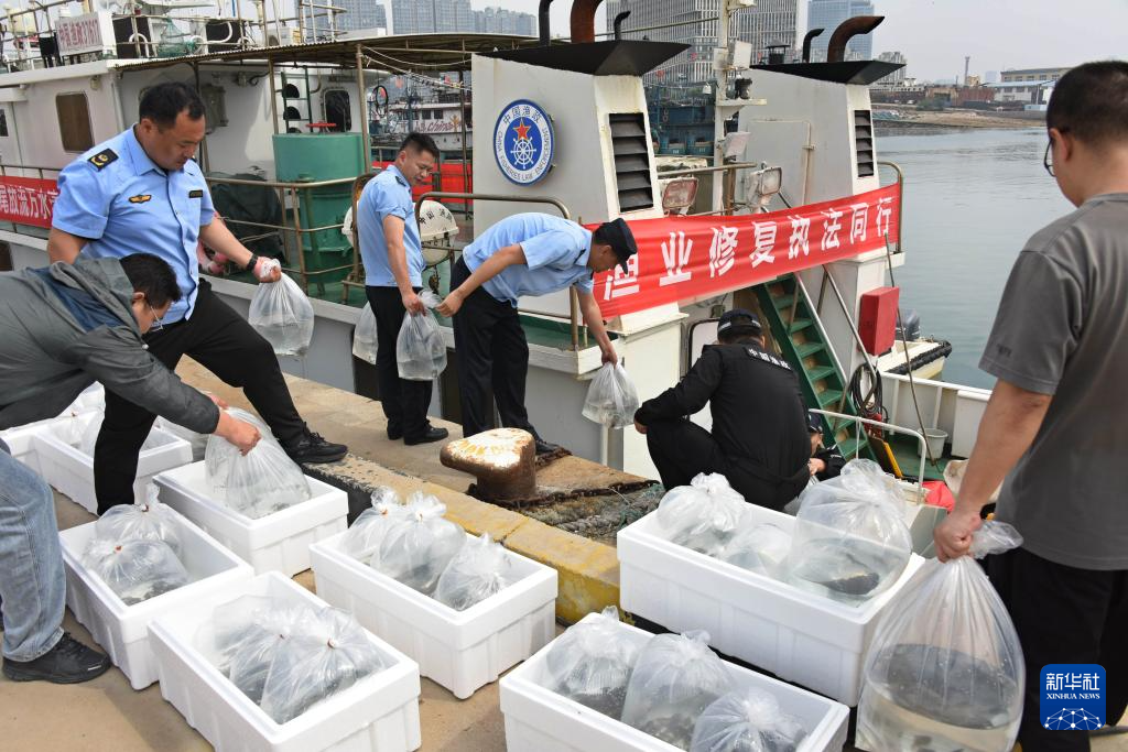 當日,青島市海洋發展、漁政等部門聯合開展2025年漁業資源增殖放流暨以增殖放流方式替代性修復受損生態環境活動,現場投放中國對蝦、褐牙鲆魚等多個品種水產種苗。