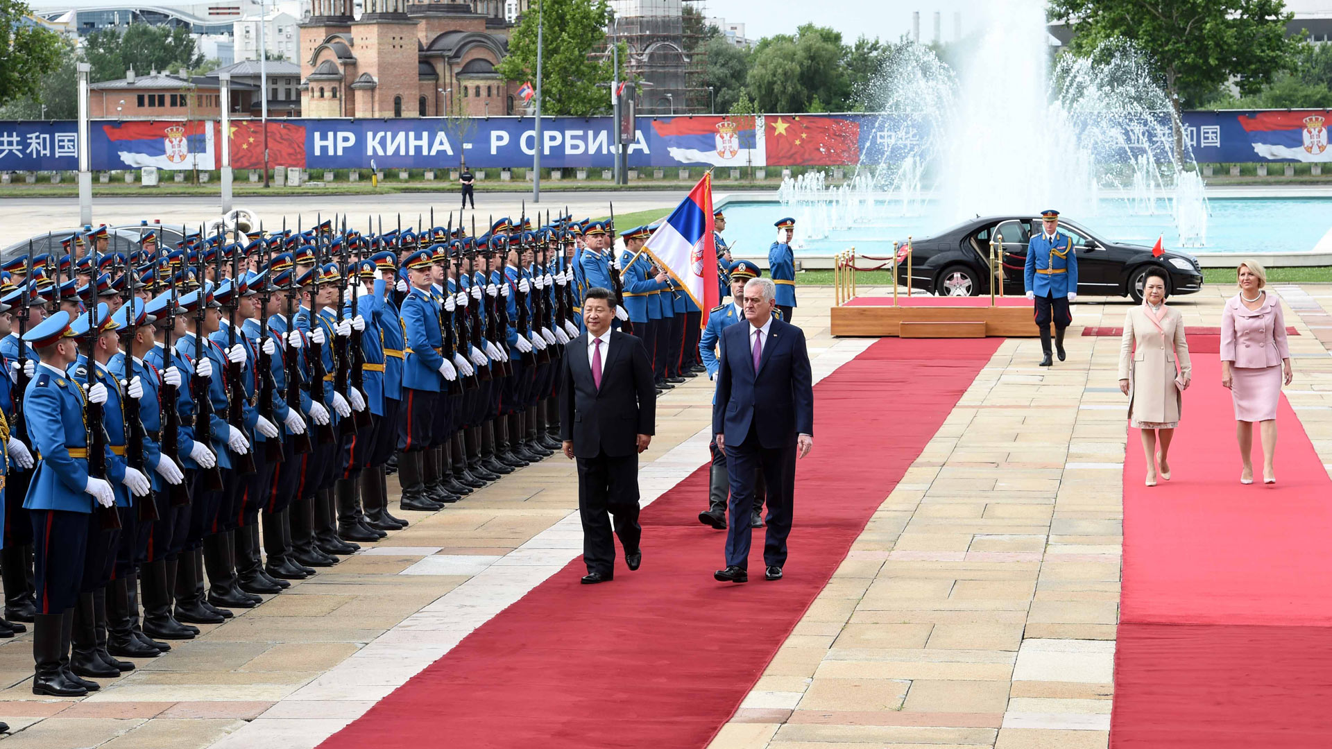 6月18日,國家主席習近平出席塞爾維亞總統尼科利奇在貝爾格萊德舉行的隆重歡迎儀式。 新華社記者馬占成攝