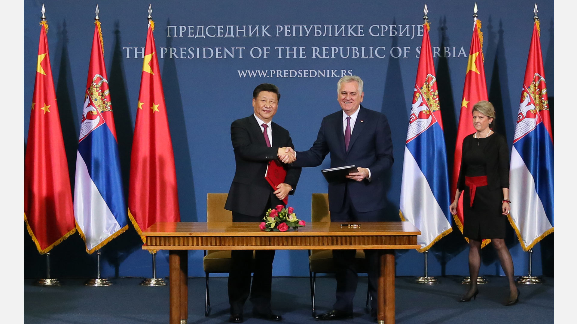 6月18日,國家主席習近平在貝爾格萊德同塞爾維亞總統尼科利奇舉行會談。這是會談后,兩國元首共同簽署《中華人民共和國和塞爾維亞共和國關于建立全面戰略伙伴關系的聯合聲明》。新華社記者 李濤 攝
