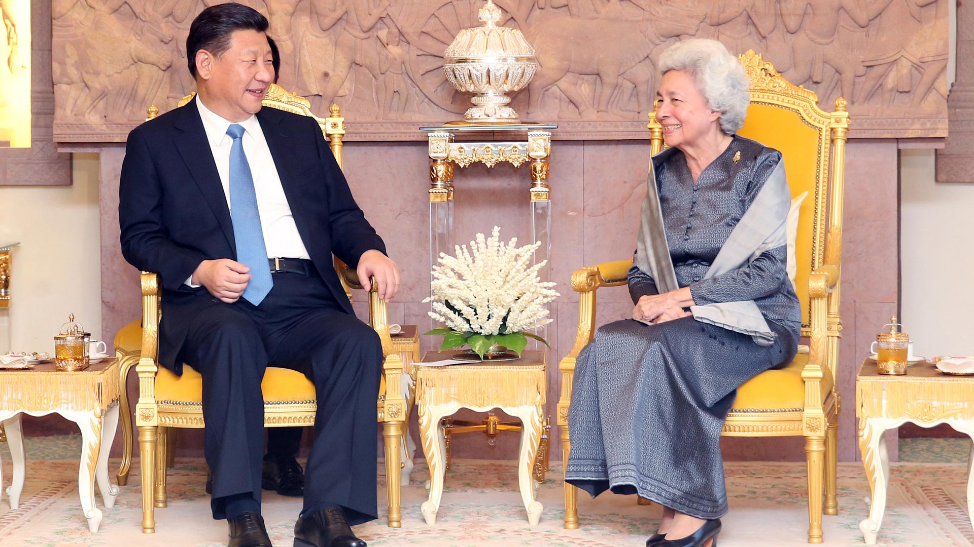 10月13日,國家主席習近平在金邊看望柬埔寨太后莫尼列。新華社記者姚大偉攝
