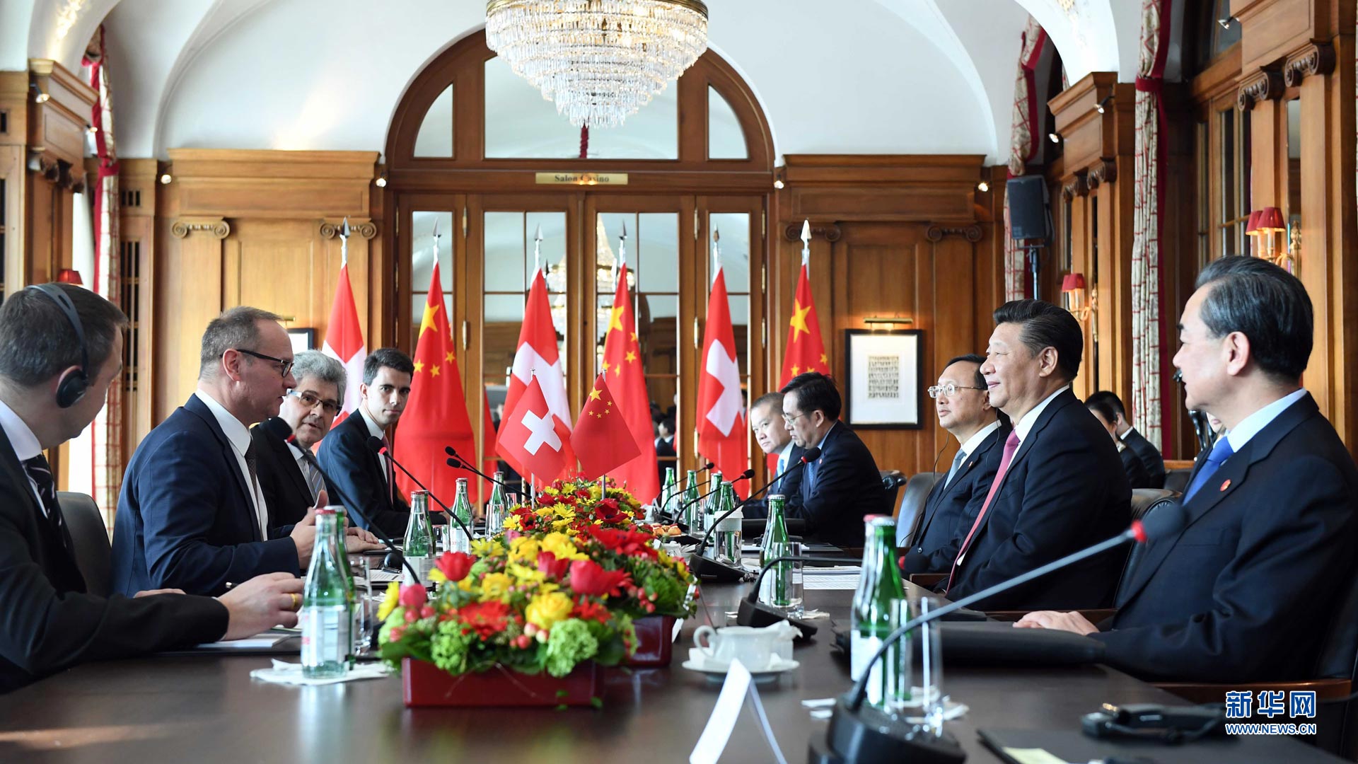 1月16日,國家主席習近平在伯爾尼會見瑞士聯邦國民院議長施塔爾和聯邦院議長比紹夫貝爾格。 新華社記者 張鐸 攝2017-01-17