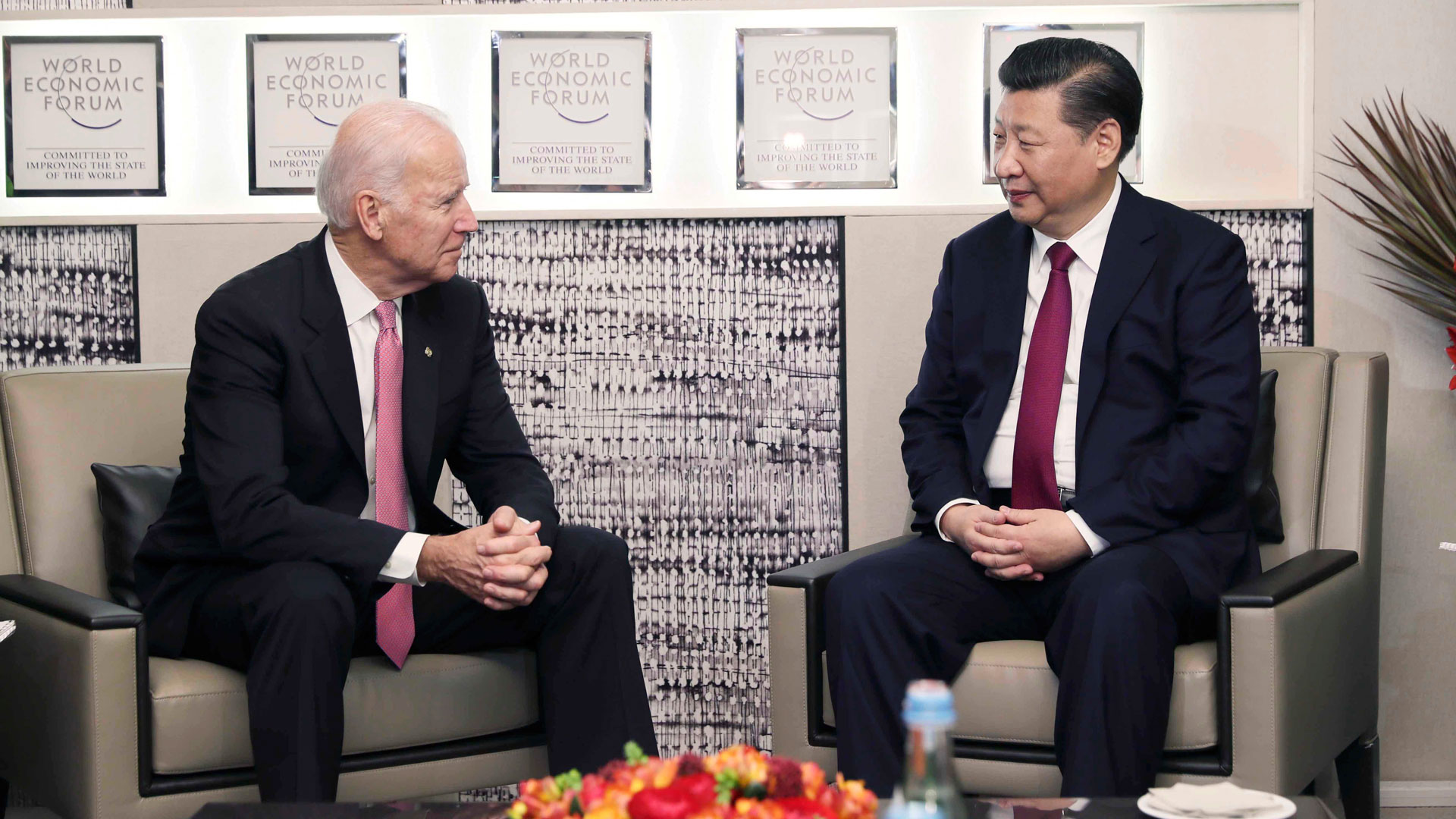 1月17日,國家主席習近平在瑞士達沃斯會見美國副總統拜登。新華社記者 蘭紅光 攝2017-01-18