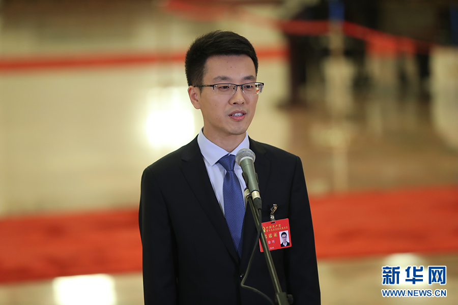 10月19日,“黨代表通道”第二場采訪活動在人民大會堂舉行。圖為徐川代表接受采訪。新華網 翟子赫 攝?