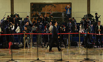 崔光日、荀笑紅、巨曉林代表接受采訪