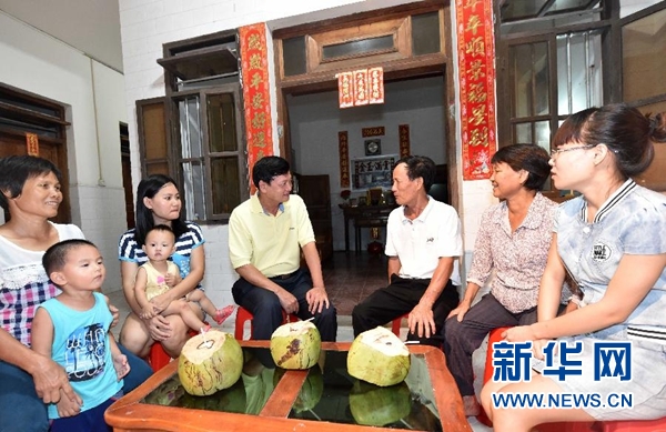 6月26日,樂東黎族自治縣縣委書記林北川(右四)夜訪九所鎮十所村,聽取聯系點群眾的情況。 新華社記者 趙穎全 攝