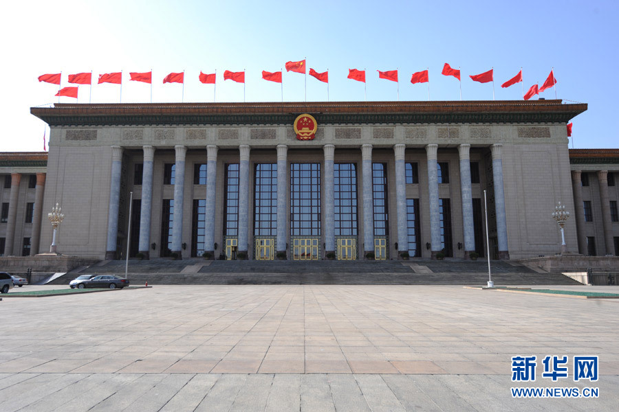 ????3月12日,十二屆全國人大三次會議在北京人民大會堂舉行第三次全體會議。圖為人民大會堂外景。 新華網/中國政府網 翟子赫 攝