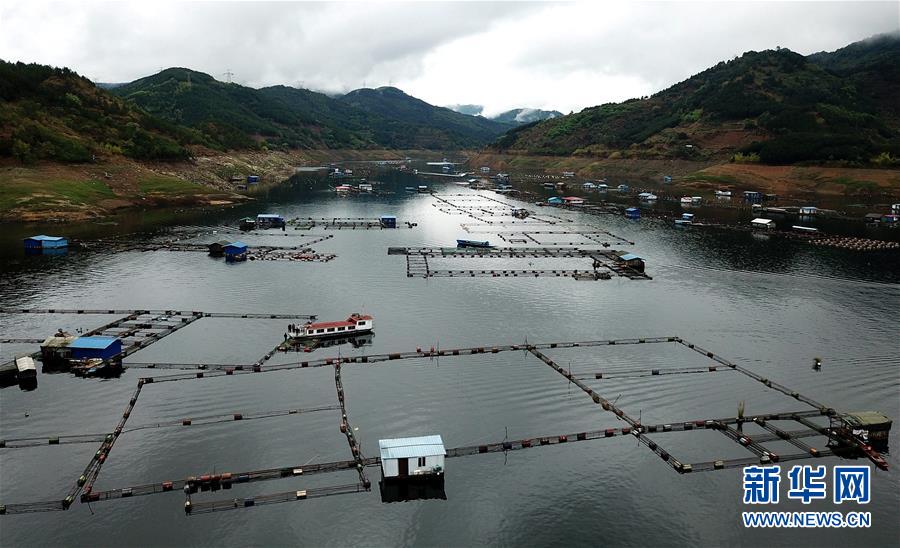 這是無人機拍攝的天生橋庫區紅水河水面上養魚的網箱(3月28日攝)。春耕春種時節,在廣西隆林各族自治縣天生橋庫區,當地農民發展的水上養魚場景與紅水河兩岸景色交相融合,構成一幅幅美麗的春日畫卷。新華社記者張愛林攝