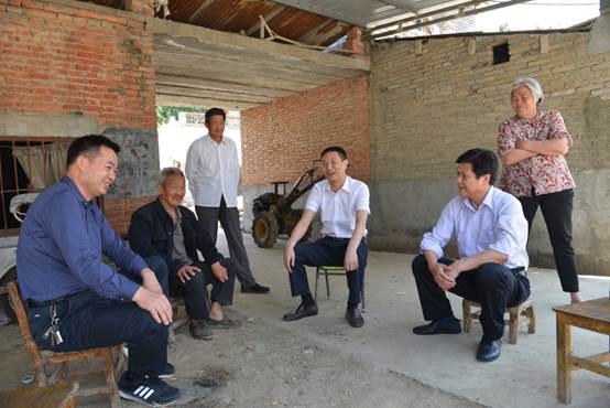 2017年5月16日,李勇同志(右三)生前在唐河縣昝崗鄉趙崗村走訪貧困戶