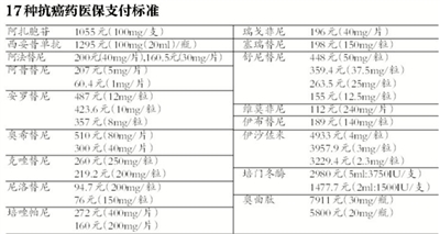 這些藥品是經過3個多月的談判進入醫保目錄的。包括非小細胞肺癌、腎癌、結直腸癌、黑色素瘤、淋巴瘤等多個癌種。17個談判藥品與平均零售價相比,平均降幅達56.7%,大部分進口藥品談判后的支付標準低于周邊國家或地區市場價格,平均低36%。