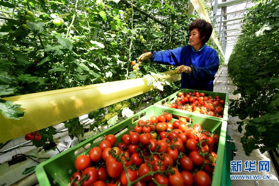 5月25日,工人在河北省南和縣賈宋鎮一家現代農業園區采摘西紅柿。新華社記者 朱旭東 攝