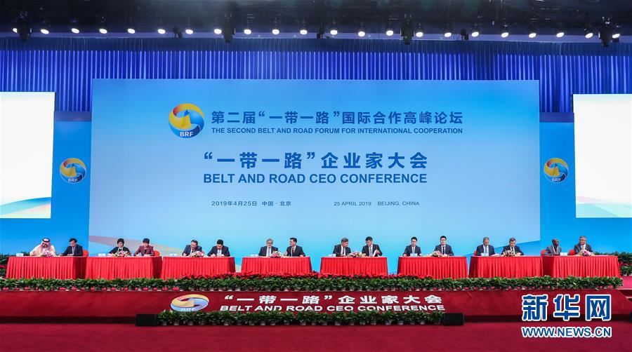 4月25日,作為第二屆“一帶一路”國際合作高峰論壇的一大亮點,首屆“一帶一路”企業家大會在北京舉行。這是簽約儀式現場。新華社記者 張玉薇 攝