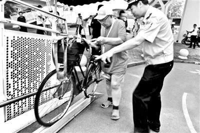 服務人員指導市民使用自行車傳送帶 攝影/本報記者 宋霞