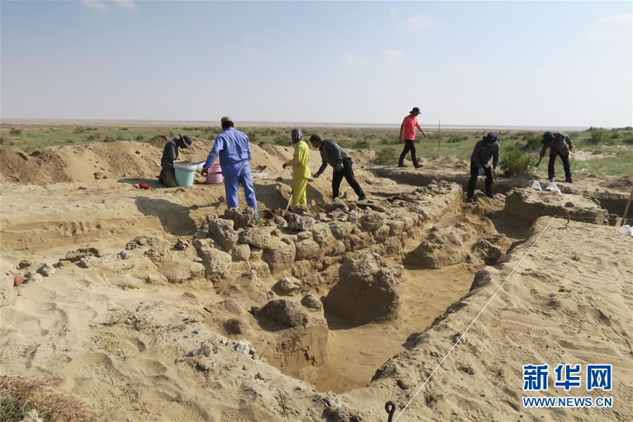 中國—沙特阿拉伯聯合考古隊隊員在沙特塞林港遺址現場工作(2019年1月12日攝)。新華社發(王霽攝)