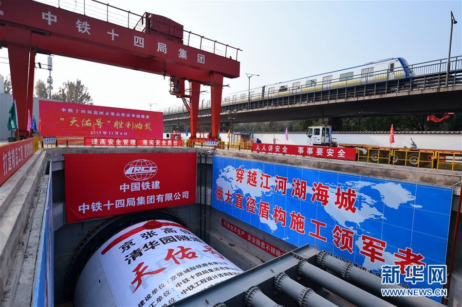 京張高鐵清華園隧道“天佑號”盾構機始發掘進(2017年11月6日攝)。新華社記者 張晨霖 攝