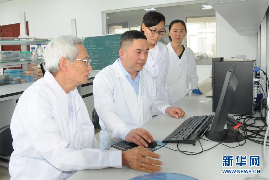 張永平(左二)在現代化向日葵科研中心進行葵花種子基因圖譜分析(7月24日攝)。新華社記者 李云平 攝