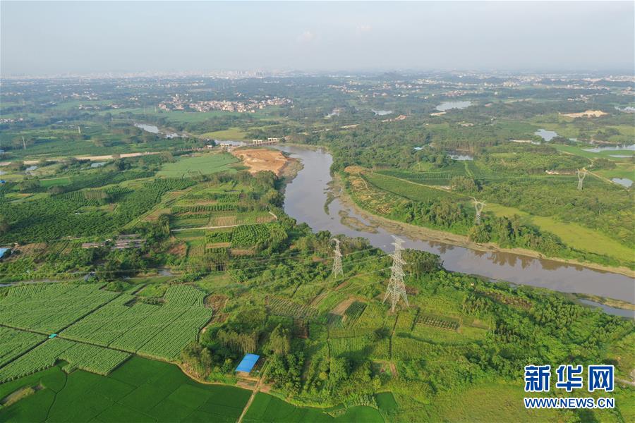 8月28日無人機拍攝南流江廣西玉林市福綿區段。新華社記者 周華 攝